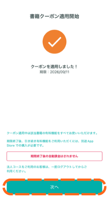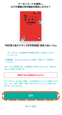 ↓書籍クーポン提供開始画面が表示されます。クーポンが適用され、学習を開始できる状態です。