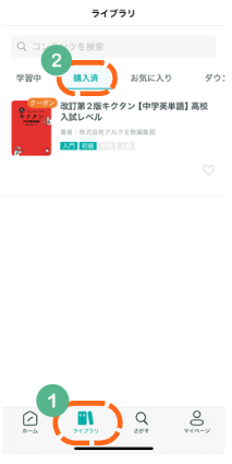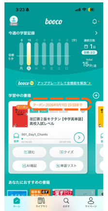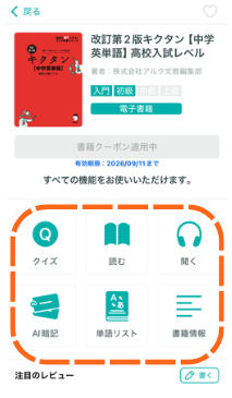 ↓boocoの機能を利用し、「クイズ」「読む」「聞く」[AI暗記]などの学習ができます。*機能は書籍によって異なります。
