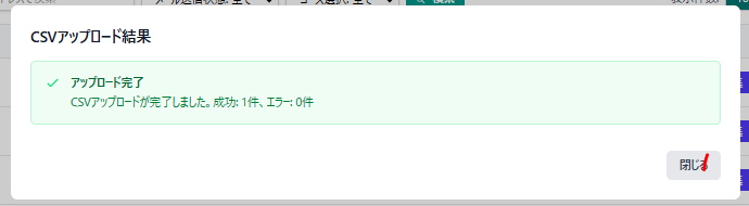3.アップロードが成功すると以下が表示されます。アップロードと同時にユーザーへ案内メールが届きます。